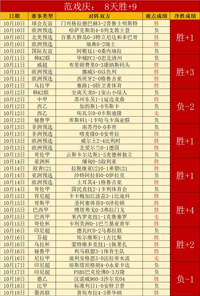 8天胜6天,合计胜+9,周末将会更精彩。9月15日打出10连胜,17连胜记录也是在近期出现的,大胜是频繁出现的高超实力。
